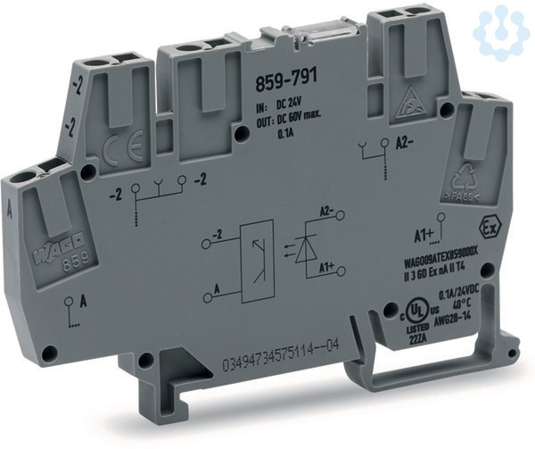 Optokopplermodul; Eingangsnennspannung DC 24 V; Ausgangsspannungsbereich DC 20 … 60 V; Grenzdauerstrom 0,1 A; 2-Leiter-Anschluss; Bahn; 6 mm Baubreite; grau