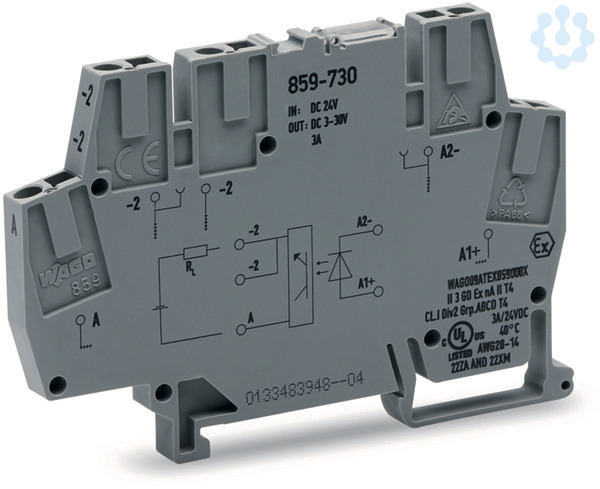 Optokopplermodul; Eingangsnennspannung DC 24 V; Ausgangsspannungsbereich DC 3 … 30 V; Grenzdauerstrom 3 A; 2-Leiter-Anschluss; 6 mm Baubreite; grau