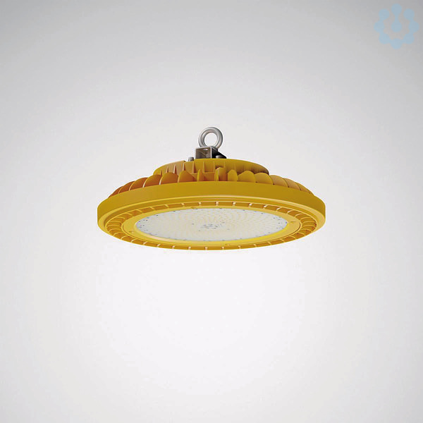 Robuster, runder Hallenstrahler für explosionsgefährdete Bereiche. Zur Verwendung in Bereichen, die durch eine explosionsfähige Atmosphäre gefährdet sind. Aufgrund der hohen Schutzart und hochbeständigen Materialien auch für die Verwendung im Außenbereich geeignet. ATEX-Kennzeichen II 2D EX TB OP IS IIIC T105 DB, II 3D EX TC OP IS IIIC T105 DC, II 2G EX EB MB OP IS IIC T5 GB, II 3G EX EC OP IS IIC T5 GB. Für die abgehängte Montage, Ringöse aus rostfreiem Edelstahl im Lieferumfang enthalten. Wand-, Decken-, Mast- und Rohrmontage mittels separat zu bestellendem Zubehör möglich. Mit lambertscher Lichtstärkeverteilung. Bemessungslichtstrom 19900 lm, Bemessungsleistung 160,00 W, Leuchten-Lichtausbeute 124 lm/W. Lichtfarbe neutralweiß, ähnlichste Farbtemperatur (CCT) 4500 K, allgemeiner Farbwiedergabeindex (CRI) Ra > 80. Mittlere Bemessungslebensdauer L80(tq 25 °C) = 70.000 h. Leuchtenkörper aus einer Aluminium-Gusslegierung mit einer gegen korrosive Umgebungen geschützten Oberfläche. Farbe Leuchtenkörper: signalgelb (RAL 1003). Abschlussscheibe aus gehärtetem Glas. Leuchtendurchmesser 390 mm, Leuchtenhöhe 134 mm. Schutzklasse (EN 61140): I, Schutzart (DIN EN 60529): IP66, Stoßfestigkeitsgrad nach IEC 62262: IK08, Prüftemperatur Glühdrahttest gemäß IEC 60695-2-11: 650 °C. Zulässige Umgebungstemperatur (ta): -32 °C - +50 °C. Gewicht: 8,3 kg. Eine Anschluss-Verschraubung (PA) sowie eine 250 mm lange Anschlussleitung ist im Lieferumfang enthalten. Mit elektronischem Betriebsgerät, schaltbar. Das Produkt erfüllt die grundlegenden Anforderungen der anwendbaren EU-Richtlinien und des Produktsicherheitsgesetzes und trägt die CE-Kennzeichnung.