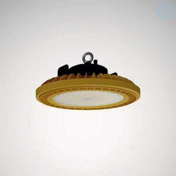 Robuster, runder Hallenstrahler für explosionsgefährdete Bereiche. Zur Verwendung in Bereichen, die durch eine explosionsfähige Atmosphäre gefährdet sind. Aufgrund der hohen Schutzart und hochbeständigen Materialien auch für die Verwendung im Außenbereich geeignet. ATEX-Kennzeichen II 3D EX TC OP IS IIIC T105 DC, II 2D EX TB OP IS IIIC TX DB, II 3G EX EC OP IS IIC TX GC, -. Für die abgehängte Montage, Ringöse aus rostfreiem Edelstahl im Lieferumfang enthalten. Wand-, Decken-, Mast- und Rohrmontage mittels separat zu bestellendem Zubehör möglich. Mit lambertscher Lichtstärkeverteilung. Bemessungslichtstrom 23300 lm, Bemessungsleistung 160,00 W, Leuchten-Lichtausbeute 146 lm/W. Lichtfarbe neutralweiß, ähnlichste Farbtemperatur (CCT) 4000 K, allgemeiner Farbwiedergabeindex (CRI) Ra > 80. Mittlere Bemessungslebensdauer L80(tq 25 °C) = 70.000 h. Leuchtenkörper aus einer Aluminium-Gusslegierung mit einer gegen korrosive Umgebungen geschützten Oberfläche. Farbe Leuchtenkörper: signalgelb (RAL 1003). Abschlussscheibe aus gehärtetem Glas. Leuchtendurchmesser 390 mm, Leuchtenhöhe 140 mm. Schutzklasse (EN 61140): I, Schutzart (DIN EN 60529): IP66, Stoßfestigkeitsgrad nach IEC 62262: IK08, Prüftemperatur Glühdrahttest gemäß IEC 60695-2-11: 650 °C. Zulässige Umgebungstemperatur (ta): -32 °C - +50 °C. Gewicht: 6,8 kg. Mit externen Anschluss- und Verteilerbox mit passenden Verschraubungen sowie einer Anschlussverschraubung (PA) für die Leuchte. Mit elektronischem Betriebsgerät, schaltbar. Das Produkt erfüllt die grundlegenden Anforderungen der anwendbaren EU-Richtlinien und des Produktsicherheitsgesetzes und trägt die CE-Kennzeichnung.