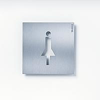 Orientierungsschild mit Piktogramm „Damen“ aus gebürstetem Edelstahl.