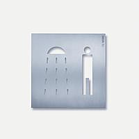 Orientierungsschild mit Piktogramm „Dusche Herren“ aus gebürstetem Edelstahl.
