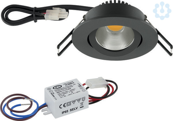Mit der COB-LED Deckeneinbauleuchte lassen sich vielfältige Anwendungen im Innenbereich, wie z. B. Effektbeleuchtung, Raumbeleuchtung, Akzentuierte Beleuchtung und vieles mehr realisieren. Da außerdem die MM-Kennzeichnung gegeben ist, lässt sich diese sogar im Möbelbau verwenden. Zusätzliche Kosten für Leuchtmittel entfallen bei dieser Leuchte, da die Leistung von einem fest verbauten LED-Chip geliefert wird. Da im Lieferumfang das Netzgerät bereits enthalten ist, fallen auch hierfür keine zusätzlichen Kosten an. Der Schwenkwinkel beträgt 20°, Gehäusefarbe ähnlich RAL7016.
