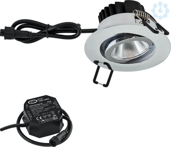 Mit der COB-LED Deckeneinbauleuchte lassen sich vielfältige Anwendungen im Innenbereich, wie z. B. Effektbeleuchtung, Raumbeleuchtung, Akzentuierte Beleuchtung und vieles mehr realisieren. Beim Einbau in geschlossene Decken erreicht die Leuchte die Schutzart IP65. Aufgrund dessen kann die Leuchte natürlich ebenso für Feuchtraum-Anwendungen und im Außenbereich eingesetzt werden. Zusätzliche Kosten für Leuchtmittel entfallen bei dieser Leuchte, da die Leistung von einem fest verbauten LED-Chip geliefert wird. Da im Lieferumfang das Netzgerät bereits enthalten ist, fallen auch hierfür keine zusätzlichen Kosten an. Der Schwenkwinkel beträgt 20°. tc: 75°C.