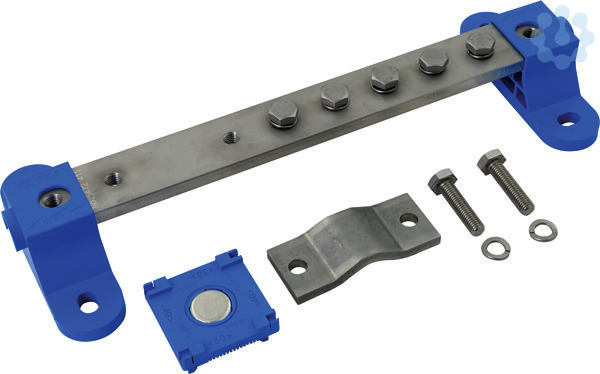 Zündfunkenfreie Ex-Potentialausgleichsschiene zum Einbinden von metallischen Leitern und Leitungen in den Blitzschutz-Potentialausgleich nach VDE 0185-305-3 (IEC 62305-3) sowie den Schutz- und Funktionspotentialausgleich nach DIN VDE 0100 Teil 410/540. Einsatz in Ex-Zonen 1 und 2 (Gase, Dämpfe, Nebel) und Ex-Zonen 21 und 22 (Stäube) Explosionsgruppe IIC (Sicherheitsfaktor 1) nach CLC 50703-2. Entspricht Temperaturklasse T4 sowie DIN EN 62561-1 (VDE 0185-561-1) Blitzstromtragfähigkeitsklasse H (100kA). Schraubensicherung gegen Selbstlockern nach VDE 0185-305-3 Beiblatt 2. Einsatz sowohl im Innenbereich als auch im Außenbereich zulässig. Um Whiskerbildung im Ex-Bereich zu vermeiden, wird der Einsatz von verzinnten Presskabelschuhen mit einer Nickelsperrschicht empfohlen. Das Produkt besitzt folgende Anschlüsse: 1x Flach (M10 x 40 mm mit Federring) und 5x Kabelschuh (M10 x 20 mm mit Federring).