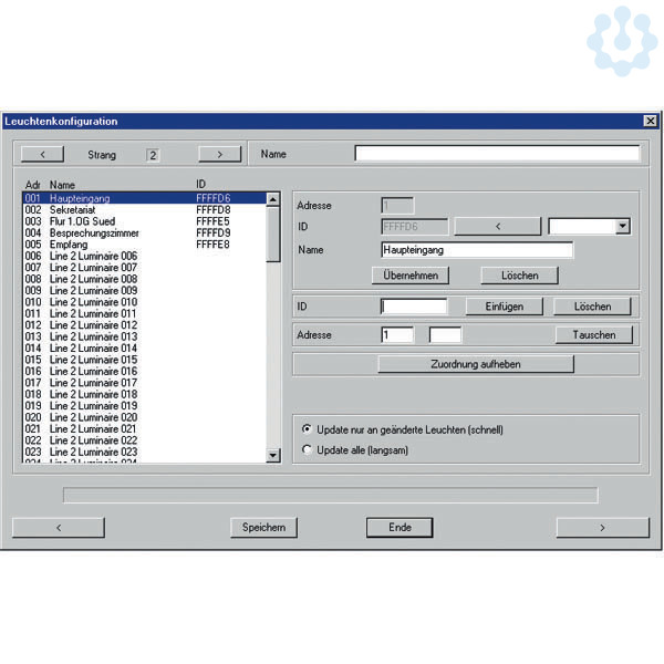 PC-Software CGLine 400 für SD-Speicherkarte zur Konfiguration der CGLine Leuchten sowie einfachen Lesen und Bearbeiten des Prüfbuchspeichers am PC. Alle Dateien sind für Dokumentationen auf SD-Karte und Festplatte speicherbar. Detaillierter Ausdruck der Controller - Konfiguration mit folgenden Angaben: Datum und Uhrzeit automatischer Funktions- und Betriebsdauertests, Abstände der Tests, Relaiskonfiguration. Detaillierter Ausdruck der Leuchten - Konfiguration pro Strang (1 - 4) mit folgenden Angaben pro Leuchte: Kurzadresse (1 - 100), Individueller Name (20 Zeichen), Identifikationsnummer. Ausdrucke Prüfbuch mit folgenden Auswahlmöglichkeiten: Fehlerereignis (unterschiedliche Fehlerereignisse separat oder komplett auswählbar), Zeitraum des Prüfbuches (von – bis für Datum und Uhrzeit), pro Strang oder komplett, individueller Kommentar pro Ausdruck, bei Leuchtenstörungen: Angabe der individuellen Leuchtennamen. Anleitung: Nein Anschlussplan: Nein Auswahlliste: Nein Begleitheft: Nein Betriebsanleitung: Nein Datenbank: Nein Dokumentation: Nein Ersatzteilliste: Nein Flyer: Nein Gebrauchsanweisung: Nein Handbuch: Nein Katalog: Nein Panorama, Übersicht: Nein Preisliste: Nein Reparaturhandbuch: Nein Schaltplan: Nein Serviceheft: Nein Software: Ja Sonstige Dokumentation: Nein