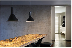Die konisch geformte Hochvolt Pendelleuchten Serie PHELIA bietet eine Vielfalt von Variationen. Die in schwarz gehaltene Leuchte verfügt über eine runde Deckenrosette. Durch den verbauten E27 Sockel ist die Leuchte für LED- und Energiesparleuchtmittel geeignet. Die Pendellänge der Leuchte beträgt 200 cm.