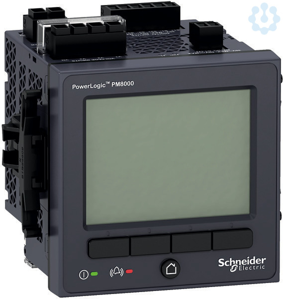 Das PowerLogic PM8240 ist ein Netzanalysator für den Fronteinbau 96 x 96 mm in Nieder- und Mittelspannungsanwendungen mit integriertem Display. Anzeige: vollgraphische TFT LCD Farbanzeige (Größe 70 x 53 mm / Auflösung 320x240) Intuitive Bedienung durch Menüführung über 5 kontexsensitive Navigationstasten. Das Messgerät mit der Genauigkeitsklasse 0.2S (gemäß der Norm IEC 62053-22) hat folgende Messfunktionen. 4-Quadranten-Messung: Import und Export für Wirk- und Blindenergie, Wirk, Blind, Scheinenergiezähler pro Phase sowie getrennte Wirkenergiezähler mit Tarifwahl über Wochenschaltuhr, Kommunikation oder Kontakt. Strom, Spannung (Durchschnitt und pro Phase), Strom-Mittelwert, Wirk-, Blind-, Scheinleistung, Leistungsfaktor (gesamt und pro Phase) Leistungs-Mittelwerte. Frequenz, Min-und Max-Werte der Momentanwerte, Max-Werte der Strom- und Leistungs-Mittelwerte. Oberschwingungsgehalt THD I, THD U und TDD. Oberschwingungsanalyse: Messwerte pro Phase mit Balkendiagramm. bis zur 63. Oberschwingung am Gerätedisplay. bis zur 127. Oberschwingung per Software. Betriebsstundenzähler für Messgerät und Last, Schwellwertüberwachung und Alarmierung: selbstlernender Schwellwert mit Alarmierung per Anzeige oder Kommunikation. 50 Datenschreiber mit je 16 Kanälen zur Aufzeichnung von Echteffektivwerten (Minuten-, Sekunden- oder 10ms-Werte), Ereignisschreiber mit Zeitstempel in Millisekunden. Erweiterte Störschreiberfunktion zur Netzoszilloskopierung im Ereignisfall mit bis zu 256 Samples/Periode für diverse Triggerereignisse, Fehlerrichtungserkennung und hohe Speichertiefe mit 512 MB. Wandlermessung von Drehstromnetzen über Stromwandler (sekundär 1 bzw. 5A) inklusive 4. Stromeingang zur N-Leiter Messung und Direktmessung bis 690V AC bzw. Mittelspannungsanwendungen über Spannungswandler. Kommunikationsports und Protokolle sind eine RS- 485 Schnittstelle (Modbus RTU, ION, DNP3) und Ethernet mit 2 physikalische Ethernet-Ports (geswitched) mit einer IP Adresse (Modbus TCP, ION TCP, DNP3 TCP, IEC 61850). Konfigurierbarer Onboard Webserver. Anschluss von E/A-Modulen möglich, damit auch 2 Differenzstrommessungen (RCM). Abmessungen: Frontmontage 96 x 96 mm, Einbautiefe 79 mm (plus 22,5 mm je E/A-Optionsmodul).