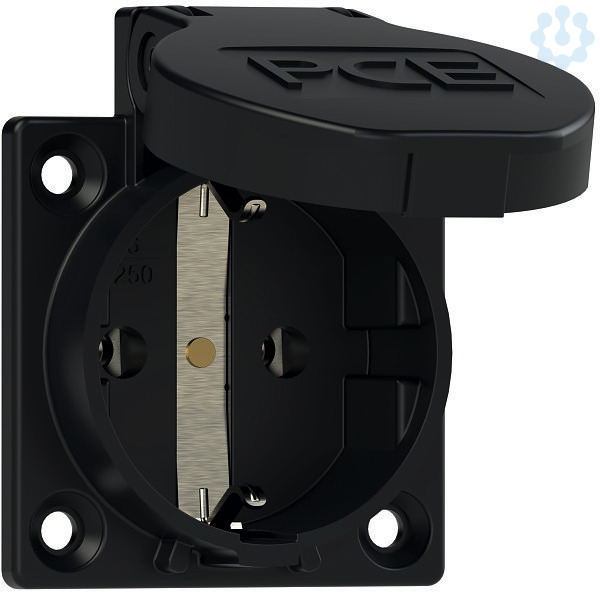 Schutzkontakt-Anbausteckdose Serie P-NOVA plus; Gehäusematerial: PA6, Farbe: schwarz; Flanschabmessungen: 50x50 mm; Anschluss: Schraubklemme, Kabeleinführung: seitlich; System: österr./deutsch. Schutzkontaktsystem; Kontakte: vernickelte Kontakte; 250V / 16A / 2P+E , Schutzart: IP54