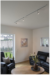 Dreh- und schwenkbar Hochvoltstrahler PURIA mit passendem Adapter für das 1Phasen Hochvolt-Schienen-System. Die aus Aluminium und satiniertem Kunststoff gefertigte Leuchte ist durch den verbauten GU10 Sockel für Halogen- sowie LED-Leuchtmittel geeignet.