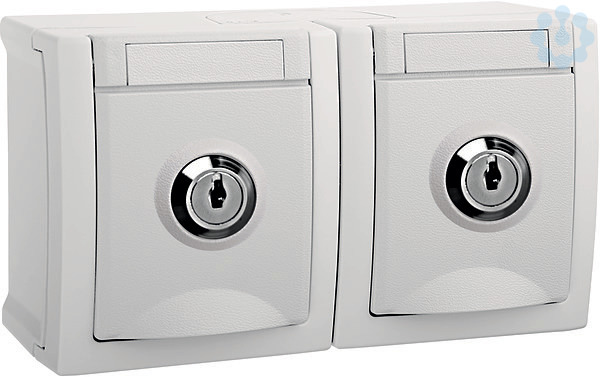 Schutzkontakt Steckdose 2-Fach für waagerechte Montage mit Sicherheitsschloss im Klappdeckel und der Möglichkeit zum Beschriften mit 90591300-DE. Mit Steckanschluss, vorverdrahtet mit 2,5q mm flexibel, 2P+E, Schloss mit 2 gleichen Schlüsseln, Im verschlossenen Zustand nicht aufschraubbar oder demontierbar Nennstrom 16A Schutzart IP54, Schlagfestigkeit IK05