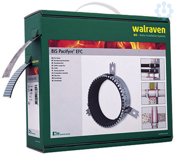 Pacifyre® EFC Brandschutzmanschette, zehn Meter in Spenderbox inklusive Befestigungsmaterial, schottet gedämmte und ungedämmte brennbare Rohrleitungen gesetzeskonform in R120-Qualtiät auch mit Nullabstand oder in schwierigen Einbausituationen sicher ab.