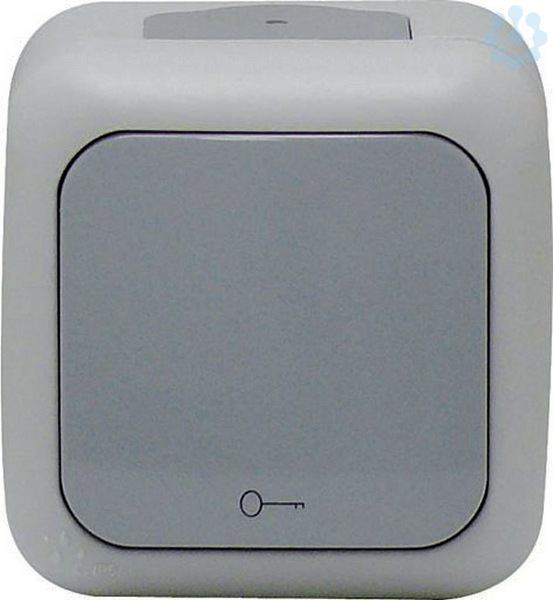 Wipptaster Schließer, mit Symbol Schlüssel, Farbe grau, Nennspannung 250V, Nennstrom 10A, Schutzart IP 54, mit Steckklemmen bis 2,5 qmm
