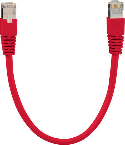 Patchkabel, Cat.6A iso, 0,5 m rot (ähnlich RAL 3000); - geeignet für 10-Gigabit-Anwendungen (Übertragungsbandbreite 500 MHz); - 2x RJ45-Stecker; - S/FTP-Ausführung; - passend zu allen gängigen RJ45-Datenanschlusskomponenten bzw. Endgeräten; - Brandverhalten/Euroklasse: EN13501-6:ECA; - Mantelmaterial: LSOH, FRNC; - angespritzter Knickschutz; - Biegeradien ohne Zugentlastung > 25 mm, mit Zugentlastung >50 mm; - Leiter: Cu-Litze, blank Ø 0,42 mm (AWG 27/7); - entsprechend nachfolgender Normanforderungen:; - DIN EN 50173-1; - ISO/IEC 11801; - PoE+ tauglich gem. IEEE 802.3at