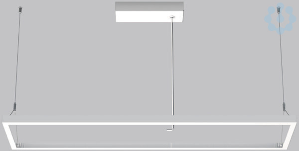 Pendelrahmen mit Stahlseilabhängung und Zuleitung. Pendelrahmen Metall pulverbeschichtet, weiß.