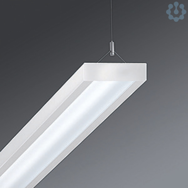 Stahlblechgehäuse, kompakter rechteckiger Querschnitt, Bauhöhe 40mm, vorbereitet zum Befestigen von Stirnseiten oder Leuchtenverbindern aus Stahl, Direkt / indirekt strahlend, Entblendung durch diffus strahlendes, satiniertes PC-Profil, bei Lichtbandmontage Diffusor optisch durchlaufend, Mit Notlicht Batterie 3h. Wechselrichter, Batterien und Leuchtdiode als Funktionskontrolle, Elektrischer Anschluss und Anschluss für Notlicht über 5-polige Anschlussklemme in Steckkontakt-Technik.