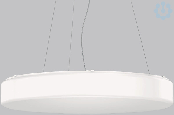 Dekorative runde LED Pendelleuchte. Armatur und Baldachin Metall pulverbeschichtet weiß. Baldachin ø 205 mm, h 35 mm. Diffusor aus vergilbungsfreiem Kunststoff (PMMA) opal. Befestigung des Diffusors mit Drehriegelverschluss. Homogene und weiche Ausleuchtung. Geeignet für Pendel. 3-Punkt Stahlseilabhängung stufenlos höhenverstellbar oder gewünschte Sonderlängen auf Anfrage.