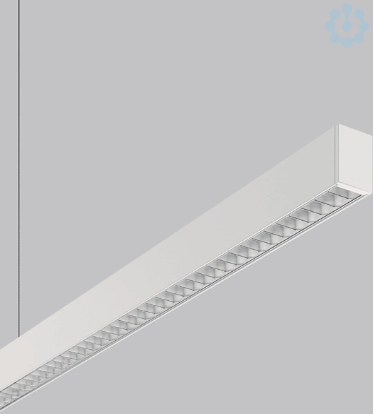 Pendelleuchte in minimalistischem Design. Gehäuse Aluminium-Strangpressprofil pulverbeschichtet. Endkappen Aluminium pulverbeschichtet. Aluminium-Mikroraster glänzend. Hervorragend geeignet für Bürobereiche (UGR < 19) und Bildschirmarbeitsplätze (BAP) gem. DIN EN 12464-1. Lichtaustritt direkt 60%, indirekt 40%. Geeignet für Pendel. 2-Punkt Stahlseilabhängung stufenlos höhenverstellbar oder gewünschte Sonderlängen auf Anfrage. Betriebsgerät im Baldachin integriert.