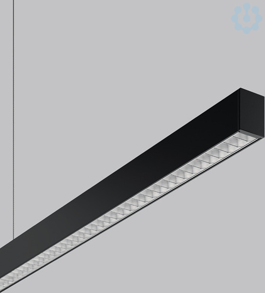 Pendelleuchte in minimalistischem Design. Gehäuse Aluminium-Strangpressprofil pulverbeschichtet. Endkappen Aluminium pulverbeschichtet. Aluminium-Mikroraster glänzend. Hervorragend geeignet für Bürobereiche (UGR < 19) und Bildschirmarbeitsplätze (BAP) gem. DIN EN 12464-1. Lichtaustritt direkt 60%, indirekt 40%. Geeignet für Pendel. 2-Punkt Stahlseilabhängung stufenlos höhenverstellbar oder gewünschte Sonderlängen auf Anfrage. Betriebsgerät im Baldachin integriert.