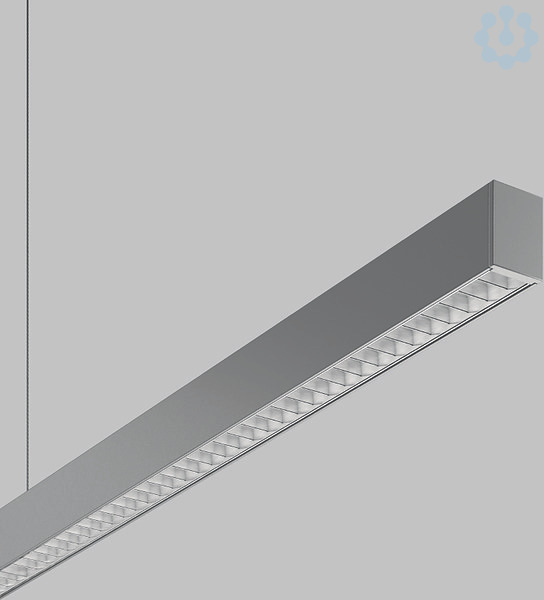 Pendelleuchte in minimalistischem Design. Gehäuse Aluminium-Strangpressprofil pulverbeschichtet. Endkappen Aluminium pulverbeschichtet. Aluminium-Mikroraster glänzend. Hervorragend geeignet für Bürobereiche (UGR < 19) und Bildschirmarbeitsplätze (BAP) gem. DIN EN 12464-1. Lichtaustritt direkt 60%, indirekt 40%. Geeignet für Pendel. 2-Punkt Stahlseilabhängung stufenlos höhenverstellbar oder gewünschte Sonderlängen auf Anfrage. Betriebsgerät im Baldachin integriert.
