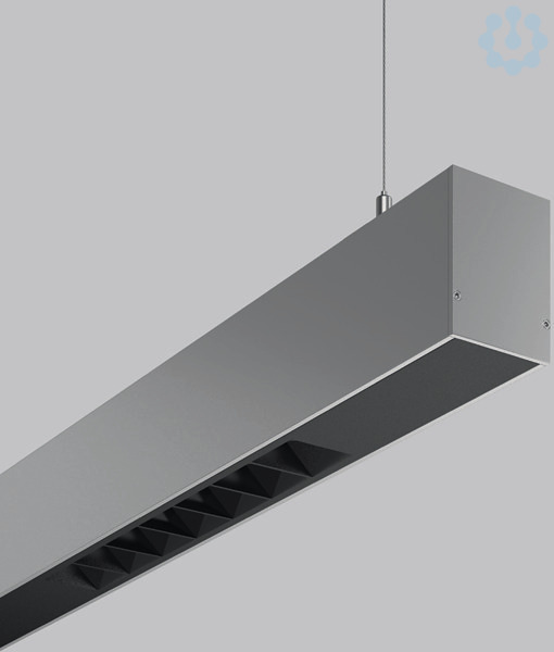 Lineare Pendelleuchte für ästhetisch anspruchsvolle Beleuchtung. Leuchte mit 4 LED-Lichteinheiten. Gehäuse Aluminium-Strangpressprofil pulverbeschichtet. Endkappen Aluminium pulverbeschichtet. LED-Lichteinheit mit MRS-Technologie: Mini-Reflektor-System aus metallisiertem Thermoplast mit prismenförmigen schwarzen Entblendungsrahmen für angenehm blendfreies Licht (UGR < 10). 7 Reflektorelemente pro LED-Lichteinheit. Lichtaustritt direkt 67%, indirekt 33%. Lichtverteilung engstrahlend. 2-Punkt Stahlseilabhängung frei positionierbar und stufenlos höhenverstellbar oder gewünschte Sonderlängen auf Anfrage. Austauschbare und herausnehmbare LED-Einheit mit integriertem Betriebsgerät. Für Durchgangsverdrahtung geeignet.