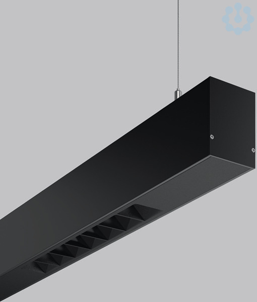 Lineare Pendelleuchte für ästhetisch anspruchsvolle Beleuchtung. Leuchte mit 4 LED-Lichteinheiten. Gehäuse Aluminium-Strangpressprofil pulverbeschichtet. Endkappen Aluminium pulverbeschichtet. LED-Lichteinheit mit MRS-Technologie: Mini-Reflektor-System aus metallisiertem Thermoplast mit prismenförmigen schwarzen Entblendungsrahmen für angenehm blendfreies Licht (UGR < 10). 7 Reflektorelemente pro LED-Lichteinheit. Lichtaustritt direkt. Lichtverteilung engstrahlend. 2-Punkt Stahlseilabhängung frei positionierbar und stufenlos höhenverstellbar oder gewünschte Sonderlängen auf Anfrage. Austauschbare und herausnehmbare LED-Einheit mit integriertem Betriebsgerät. Für Durchgangsverdrahtung geeignet.