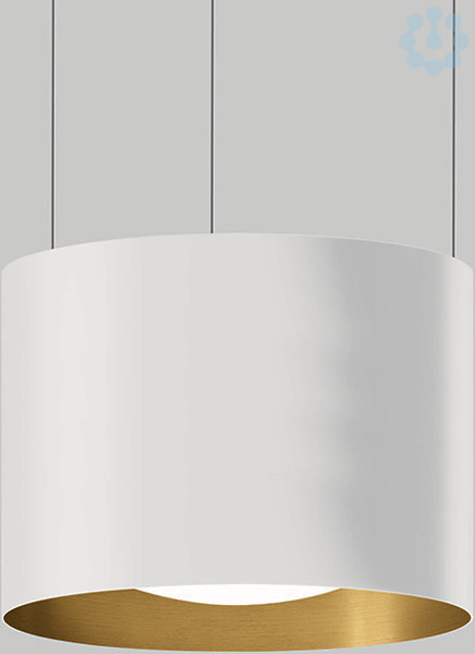 BEGA STUDIO LINE Pendelleuchte 50783.4K3 für den Innenbereich. Zweiseitiger, abgeblendeter Lichtaustritt. LED, 94,8 W Leuchten-Anschlussleistung, Leuchten-Lichtstrom 6497 lm, Farbtemperatur 3000 K. Farbwiedergabeindex (CRI) > 90. Mit austauschbarem BEGA LED-Modul mit Übertemperaturschutz und einer Lebenserwartung von mindestens 50.000 Betriebsstunden. 20-jährige Nachliefergarantie auf das LED-Modul und die Verschleißteile. Mit LED-Netzteil, DALI-steuerbar, 220-240 V, 0/50-60 Hz. Leuchtengehäuse aus Aluminium. Oberfläche Farbe samtweiß. Innenfarbton messing matt. Schlagfeste Kunststoffabdeckung, weiß. 3 Stahlseilaufhängungen · Anschlussleitung weiß 5 x 0,75 qmm. Abmessungen Ø 475 x 255 x 3950 mm