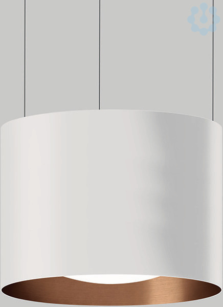 BEGA STUDIO LINE Pendelleuchte 50783.6K3 für den Innenbereich. Zweiseitiger, abgeblendeter Lichtaustritt. LED, 94,8 W Leuchten-Anschlussleistung, Leuchten-Lichtstrom 6349 lm, Farbtemperatur 3000 K. Farbwiedergabeindex (CRI) > 90. Mit austauschbarem BEGA LED-Modul mit Übertemperaturschutz und einer Lebenserwartung von mindestens 50.000 Betriebsstunden. 20-jährige Nachliefergarantie auf das LED-Modul und die Verschleißteile. Mit LED-Netzteil, DALI-steuerbar, 220-240 V, 0/50-60 Hz. Leuchtengehäuse aus Aluminium. Oberfläche Farbe samtweiß. Innenfarbton kupfer matt. Schlagfeste Kunststoffabdeckung, weiß. 3 Stahlseilaufhängungen · Anschlussleitung weiß 5 x 0,75 qmm. Abmessungen Ø 475 x 255 x 3950 mm