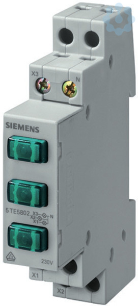 Phasenmelder 3x LED, 230V 3x grün Schaltgeräte zur Hutschienen-Montage für das Steuern elektrischer Anlagen. Die Schaltgeräte zur Hutschienenmontage von Siemens als wichtiger Bestandteil der SENTRON Komponenten für die Elektroinstallation werden in Steuerschränken und Verteilern zum Ein-, Aus- und Umschalten von Kleinlasten eingesetzt. Ob mit Fern- oder Handschaltung, Rast- oder Tastfunktion, für Infrastruktur oder industrielle Anforderungen - Siemens bietet Schaltgeräte für alle Anwendungen und jedes Einsatzgebiet. Komfortable Montage- und Anschlusstechnik, einheitliches Zubehör und ein durchgängiges Design - das sind die Kennzeichen der Gerätefamilie. Die Schaltgeräte von Siemens zeichnen sich vor allem aus durch: 1. Umfangreiche Anwendungen für das Schalten und Tasten von Kleinlasten. 2. Einheitliches Zubehör in breiter Vielfalt einfach zu montieren und jederzeit austauschbar. 3. Platzsparende und einfache Hutschienen-Montage. 4. Kombination mit Fernschalter möglich. 5. Zuverlässige Sicherheit bei der Installation dank standardmäßig enthaltenem Umgreif- und Berührungsschutz. 6. Optimale Technik für Ihre Sicherheit - nur von Siemens.