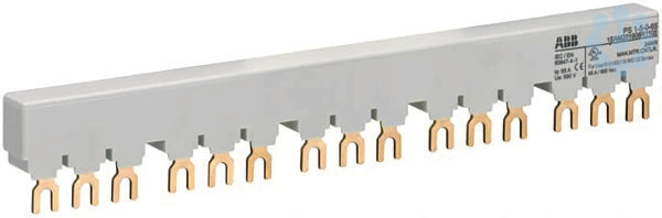 3-Phasen-Sammelschienen PS1 dienen der Paralleleinspeisung mehrerer Motorschutzschalter MS116/132/MO132 mit 0, 1 oder 2 seitlichen Anbauteilen von 9mm Baubreite