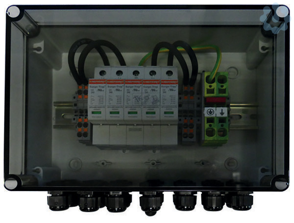 DC PV-Junction Box ist eine Serie von DC Photovoltaik Generator Anschlusskästen zum Schutz der Umrichter nach IEC/EN vor Blitz- und Überspannungen. Die Boxen sind vorinstalliert und werden parallel zu den Umrichtern, hauptsächlich für 1000Vdc Dachinstallationen, eingesetzt. Verfügbar sind die Boxen in unterschiedlichen Konfigurationen, z.B mit Typ 1+2 oder Typ 2 Ableitern, Kabelverschraubungen oder MC4 - Steckern und für eine unterschiedliche Anzahl an MPPTs und Strings.