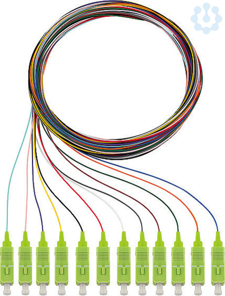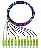 Pigtails, 12xSC, OM5, 2m; - MM-Faser, G50/125 µm, Grade B oder SM-Faser, E9/125 µm, Grade B; - Farbfolge gem. IEC 60304; - SC-Stecker einseitig montiert; - entsprechend nachfolgender Normanforderungen:; - ISO 61754-4; - mit Prüfprotokoll; - Länge 2 m