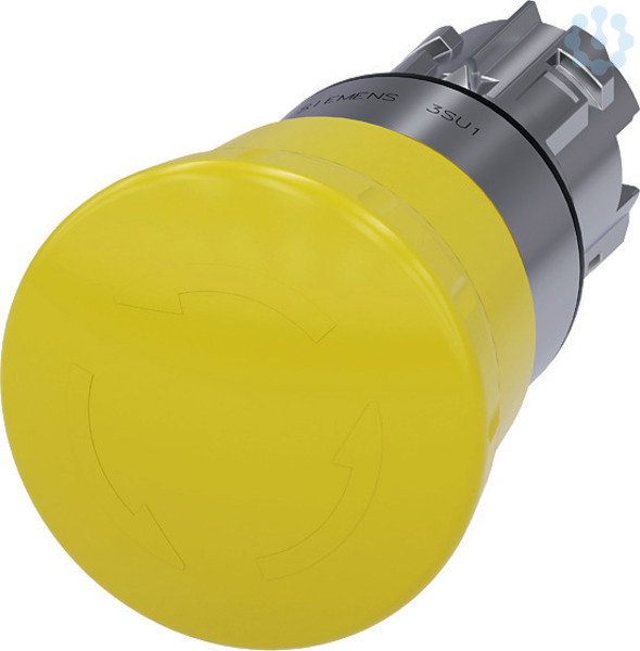 Pilzdrucktaster, 22 mm, rund, Metall, hochglanz, gelb, 40 mm, zwangsläufige Verrastung, gemäß DIN EN ISO 13850, Drehentriegelung Pilzdrucktaster SIRIUS ACT mit großer Handhabe zur komfortablen Betätigung mit der ganzen Hand.Unter dem Markennamen SIRIUS ACT bietet Siemens ein einzigartiges Portfolio an Befehls- und Meldegeräten mit weltweiten Produkt-Zulassungen in drei modernen Designreihen aus robustem Echtmetall und hochwertigem Kunststoff.Das innovative Aufschnappkonzept vereinfacht die Montage so weit, dass dafür nur eine Hand und kein Spezialwerkzeug erforderlich ist. Als Montagebohrungen genügen nutfreie Löcher, da bereitsein 100%iger Verdrehschutz integriert ist.Dank der durchgängig hohen Schutzart sind die robusten Geräte industrietauglich und für den Außeneinsatz geeignet. Sogar die Reinigung mit Hochdruckstrahl ist möglich. Weder Staub, Öle noch aggressive Laugen können den zuverlässigen Betrieb stören.Neben der Standardverdrahtung können die meisten Geräte auch über PROFINET, AS-Interface oder IO-Link an die Steuerung angebunden werden. Damit reduzieren Sie Ihren Verdrahtungsaufwand, minimieren Fehlerquellen und gewinnen mehr Flexibilität.Komfortabel unterstützt der grafische Online-Konfigurator bei Auswahl und Bestellung von Einzelgeräten, Gehäusen und Beschriftungen. Umfangreiche Dokumentation (z.B. Handbuch, 3D-Daten, Anschlussdiagramm) ist verfügbar.Lieferbare Ausführungen: 30/40/60 mm Pilz-Durchmesser, mehrere Farben, beleuchtet/unbeleuchtet, verrastende/tastende Betätigung, Zug-/Drehentriegelung.Hinweis: Einzelgerät, Halter und Module bitte extra bestellen.SIRIUS ACT - Performance in Action beim Befehlen und Melden. Einfach montiert, einfach stark, einfach perfekt.