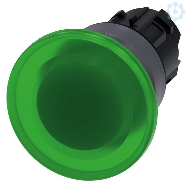 Leuchtpilzdrucktaster, 22 mm, rund, Kunststoff mit Metallfrontring, grün, 40 mm, tastend Pilzdrucktaster SIRIUS ACT mit großer Handhabe zur komfortablen Betätigung mit der ganzen Hand.Unter dem Markennamen SIRIUS ACT bietet Siemens ein einzigartiges Portfolio an Befehls- und Meldegeräten mit weltweiten Produkt-Zulassungen in vier modernen Designreihen aus robustem Echtmetall und hochwertigem Kunststoff.Das innovative Aufschnappkonzept vereinfacht die Montage so weit, dass dafür nur eine Hand und kein Spezialwerkzeug erforderlich ist. Als Montagebohrungen genügen nutfreie Löcher, da bereits ein 100%iger Verdrehschutz integriert ist.Dank der durchgängig hohen Schutzart sind die robusten Geräte industrietauglich und für den Außeneinsatz geeignet. Sogar die Reinigung mit Hochdruckstrahl ist möglich. Weder Staub, Öle noch aggressive Laugen können den zuverlässigen Betrieb stören.Neben der Standardverdrahtung können die Geräte auch über PROFINET, AS-Interface oder IO-Link an die Steuerung angebunden werden. Damit reduzieren Sie Ihren Verdrahtungsaufwand, minimieren Fehlerquellen und gewinnen mehr Flexibilität.Komfortabel unterstützt der grafische Online-Konfigurator bei Auswahl und Bestellung von Einzelgeräten, Gehäusen und Beschriftungen. Umfangreiche Dokumentation (z.B. Handbuch, 3D-Daten, Anschlussdiagramm) ist verfügbar.Lieferbare Ausführungen: 30/40/60 mm Pilz-Durchmesser, mehrere Farben, beleuchtet/unbeleuchtet, verrastende/tastende Betätigung, Zug-/Drehentriegelung.Hinweis: Einzelgerät, Halter und Module bitte extra bestellen.SIRIUS ACT - Performance in Action beim Befehlen und Melden. Einfach montiert, einfach stark, einfach perfekt.