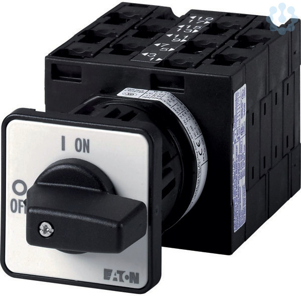 Polumschalter, Sortiment: Steuerschalter, Typkenner: T3, mit schwarzem Knebel und Frontschild, Hinweis: SOND 29, Kontakte: 10, Schutzart: Front IP65, Bauform: Zentraleinbau, Schaltfunktion: Dahlander-Schaltung, 2 Drehzahlen, Schaltwinkel: 60 °, Schaltverhalten: rastend, mit 0-Stellung, Frontschild: 0-1-2, Bemessungsbetriebsleistung AC-23A, 50 - 60 Hz 400 V: P = 15 kW, Bemessungsdauerstrom: Iu = 32 A, 5 Baueinheit(en), Normen und Bestimmungen: IEC/EN 60947, VDE 0660, IEC/EN 60204, CSA, UL, Lasttrennschalter nach IEC/EN 60947-3