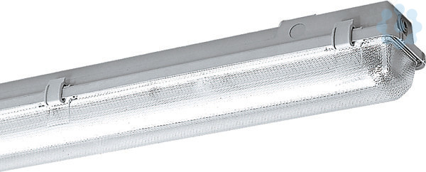 Polyester FR-Notleuchte zum Anschluss an zentrale Energieversorgung. EVG zum Betrieb an 230V AC und 220V DC durch eingebaute Sicherung zum selektiven Abschalten im Fehlerfall nach DIN EN 60598-2-22, VDE 0711-2-22, Absatz 22.6.3. Glasfaserverstärktes Polyestergehäuse, PMMA-Abschlusswanne mit Schlagzähkomponente (klar, perlstrukturiert), Kunststoffverschlussklammern (einteilig), Stahlblechreflektor (weiß, aushängbar, mit aufmontierten elektrischen Komponenten, Drehverschlüsse zur Schnellmontage), 3-polige Anschlussklemme, variable Kabeleinführung (stirn- und oberseitig, 2 Verschlussstopfen M20), einseitige Rein/Raus-Verdrahtung möglich (Kabeleinführungen vorgepresst), 2 Befestigungspunkte, Dichtungen und U-Scheiben liegen bei. IP65, SK I, für 1x T26/36W.
