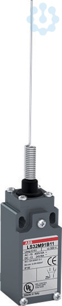 LS32M91B11 ist ein 30 mm breiter Positionsschalter aus einer Zinklegierung (Zamak), mit 2 Befestigungsbohrungen oben, 1 1/2 Zoll NPT Kabeleinführung unten, 1 abgeflachten Tastfeder sowie 1 Schließer + 1 Öffner als Sprungkontakt