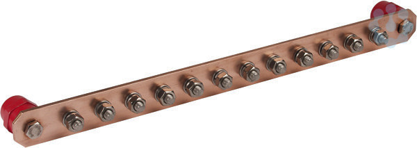 Potentialausgleichsschiene Industrie nach DIN EN 62561-1, für den Schutz und Funktionspotentialausgleich nach DIN VDE 0100-410/540 und den Blitzschutz-Potentialausgleich nach DIN EN 62305-3 (VDE 0185-305-3). Mit Isolator UP (duroplastisch, rot) mit Gewinde M10, UV-stabilisiert und halogenfrei. Auch für den Einsatz in Ex-Bereichen geeignet (Selbstlockern der Schrauben gesichert). Ausführung mit 12 Anschlüssen - Schraube M10, Federring und Mutter.