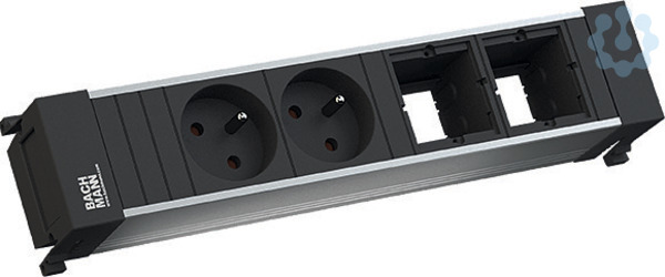 POWER FRAME Steckdosenleiste 2xUTE Steckdosen Frankreich schwarz 2xCustom Module leer Stromeingang: 0,2m H05VV-F 3G1,5mm² mit GST18 Stecker mit BACHMANN Logo verpackt im Karton