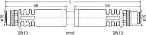 Power-Leitung; M12L-Buchse; axial; M12L-Stecker; axial; 5-polig; Länge 1 m