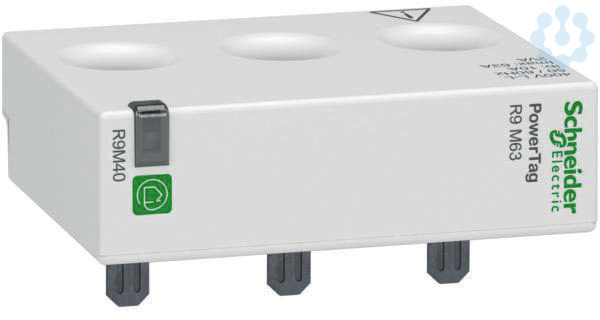 PowerTag Resi9 M63 3 polig mit Stiftanschluss, 220 - 240 V AC +/- 20 %, zwischen Phase und Neutral, 380 - 415 V AC, +/- 20 %, zwischen Phase und Phase, Imax 63A Verbindung zum Wiser Hub über Funkverbindung - ISM Band 2.4 GHz to 2.4835 GHz Einbau von oben oder unten an einen Resi9 Leitungsschutzschalter Energiesensoren zum Übertragen der Energiedaten an den Wiser Hub Genauigkeitsklasse 1