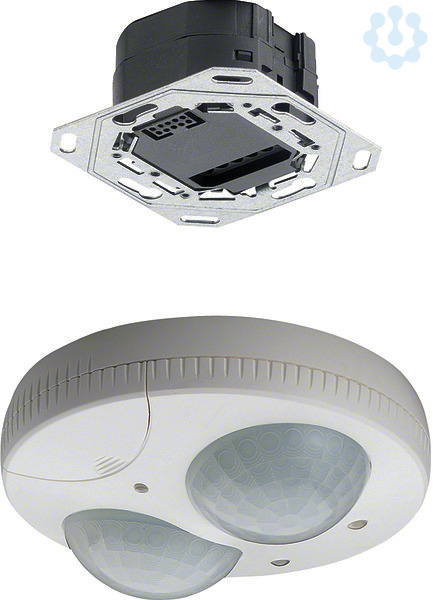 Präsenzmelder Aufbau 1 Kanal mit Unterputz Schalteinsatz. Zur Beleuchtungssteuerung in Abhängigkeit von Helligkeit und Bewegung. Deckenmontage. Anpassung des Überwachungsbereiches durch drehbare Linsen. Master/Slave Funktion