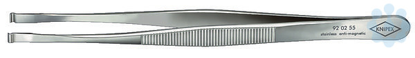 92 02 55 Präzisions-Pinzette Greifflächen glatt. Blendfrei mattiert. Greifbacken 3,5 mm breit, für zylindrische Bauteile mit Ø 0,8 mm. geriffelte Griffe. rostfrei, antimagnetisch und säurefest. - Ausführung: rostfrei, antimagnetisch, säurefest