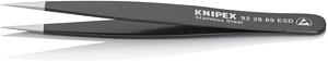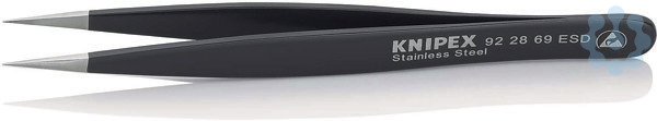 92 28 69 ESD Universalpinzette ESD Elektrisch ableitende Beschichtung: Universalpinzetten in ESD-Ausführung gleichen Potentialunterschiede zwischen ihrem Nutzer und den Bauteilen kontrolliert aus. Sie erfüllen die Anforderungen der Elektronik- und Feinmechanikindustrie und schützen empfindliche Bauteile. - Ausführung: Mattiert - Spitzenbreite (B): 0,25mm - Ausführung Pinzettenspitze: Nadelspitz - Korrisionsbeständig: Ja - Branche Medizin: Ja - Branche Wissenschaft: Ja - ESD: Ja
