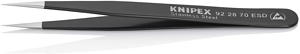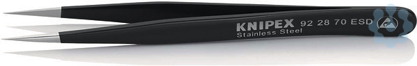 92 28 70 ESD Universalpinzette ESD Elektrisch ableitende Beschichtung: Universalpinzetten in ESD-Ausführung gleichen Potentialunterschiede zwischen ihrem Nutzer und den Bauteilen kontrolliert aus. Sie erfüllen die Anforderungen der Elektronik- und Feinmechanikindustrie und schützen empfindliche Bauteile. - Ausführung: Mattiert - Spitzenbreite (B): 0,25mm - Ausführung Pinzettenspitze: Nadelspitz - Korrisionsbeständig: Ja - Branche Medizin: Ja - Branche Wissenschaft: Ja - ESD: Ja