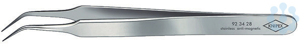 92 34 28 Präzisions-Pinzette Für feinste Montagearbeiten. Extra feine Spitzen. Greifflächen glatt. Rostfrei, antimagnetisch. Blendfrei mattiert. gewinkelte Spitzen.