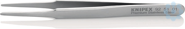 92 51 01 Präzisionspinzette Widerstandsfähig und präzise: Präzisionspinzetten aus Premium-Edelstahl bieten enorme Zähigkeit und gute Beständigkeit gegenüber den meisten Chemikalien, Salzen und Säuren. Durch ihr hochwertiges Material eignen sie sich für den Einsatz in chemischer, pharmazeutischer und Elektroindustrie, durch die präzise gearbeiteten Pinzettenspitzen sogar für feinste mikroskopische Arbeiten. Dauergebrauchstemperatur 350°; Kurzzeit-Temperatur Luft 925°. - Ausführung: Mattiert - Spitzenbreite (B): 1,9mm - Ausführung Pinzettenspitze: Stumpf - Korrisionsbeständig: Ja - Branche Feinmechanik: Ja - Branche Medizin: Ja - Branche Wissenschaft: Ja - Branche Lebensmittel: Ja