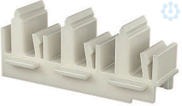 Profilverbinder horizontal mit Führungsschlitzen zum Einrasten von Konvektionsgitterprofilen. Der Profilverbinder wird mit dem Spannbügel Typ SP3 auf der Befestigungskonsole montiert.