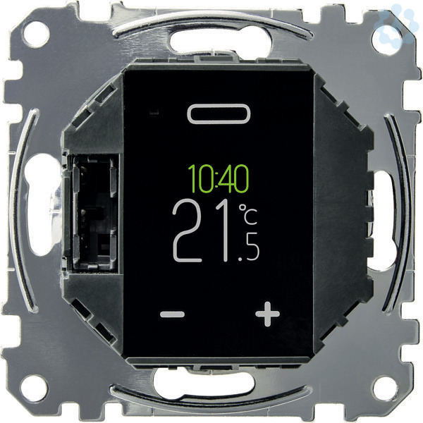 Programmierbarer Universal Temperatur- Regler Einsatz mit Touch Display. Programmierbarer Universal Temperatur- Regler Einsatz mit Touch Display: Mit dem programmierbaren Universal Temperaturregler-Einsatz mit Touch-Display kann die Raum- oder Bodentemperatur geregelt werden. Die Bedienung erfolgt über ein Touch-Display. An den Regler können elektrische Fußbodenheizungen, Radiatoren oder Stellantriebe angeschlossen werden. Der Thermostat verfügt über eine Wochenuhr mit individuell einstellbaren Programmen. Alternativ kann zwischen 3 vorprogrammierten Programmen gewählt werden. Es stehen verschiedene Heizmodis zur Verfügung: Comfort-Modus, ECO-Modus und Frostschutz-Modus. Der Thermostat kann in vier verschiedenen Betriebsarten betrieben werden: Raumluft Betrieb. Der interne Temperatursensor erfasst die Raumtemperatur und regelt diese. Fußboden Betrieb. Der als Zubehör erhältliche Fußbodensensor erfasst die Bodentemperatur und regelt die elektrische Fußbodenheizung. Dual Betrieb. Der interne Temperatursensor erfasst die Raumtemperatur und regelt diese. Zugleich überwacht der Fußbodensensor die Bodentemperatur und begrenzt diese auf den voreingestellten Wert der maximalen Temperatur. Diese Betriebsart empfiehlt sich besonders bei temperaturempfindlichen Parkett- oder Laminatfußböden. PWM Betrieb. Die Plusweitenmodulation (PWM) schaltet die Heizung in regelmäßigen Intervallen an und aus. Die gewünschte Temperatur wird über den PWM-Wert eingestellt. Der Fußbodensensor ist in dieser Betriebsart außer Funktion. Die Raumtemperaturgrenzen werden eingehalten. Funktionen: -Automatische Sommer-/Winterzeitumstellung. Ventilschutzfunktion. Betriebstundenanzeige. Reglerverhalten: PWM oder 2-Punkt. Verhalten Relaisausgang: Öffner/Schließer. Selbstlernende Vorlaufzeiten. Nennspannung: AC 230 V, 50 Hz. Nennlast (Ohmsch): 3680 W, 16 A. Nennlast (Induktiv): 1 A, cos Phi 0,6. Betriebstemperatur: -10 GradC bis +35 GradC. Einstellbereich. Raumtemperatur: +5 GradC bis +35 GradC. Bodentemperatur: +5 GradC bis +50 GradC.