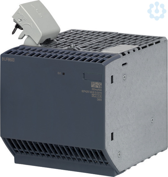 SITOP BUF8600 300ms Puffermodul fuer PSU8600 Pufferkapazitaet 300 ms/40 A mit Elektrolytkondensatoren wartungsfrei *EX-Zulassung nicht mehr verfügbar* Die Puffermodule SITOP BUF8600 mit wartungsfreien Energiespeichern sind Teil des Systembaukastens der SITOP PSU8600 und überbrücken zuverlässig kurzeitige Netzausfälle bis 300 ms bei DC 24 V und 40 A Volllast. Sie übernehmen bei Ausfall der Netzspannung automatisch die Gleichspannungsversorgung. An das Grundgerät SITOP PSU8600 können bis zu zwei Puffermodule BUF8600 beliebig kombinierbar angeschlossen werden. Die Verbindung erfolgt an der Oberseite der Module ohne jeglichen Verdrahtungsaufwand über den System Clip Link, einen Verbindungsstecker für Systemdaten und Energieversorgung. Das einzigartige modulare Stromversorgungssystem PSU8600 mit vollständiger TIA-Einbindung setzt neuen Standard in Sachen Anlagenzuverlässigkeit und Effizienz.
